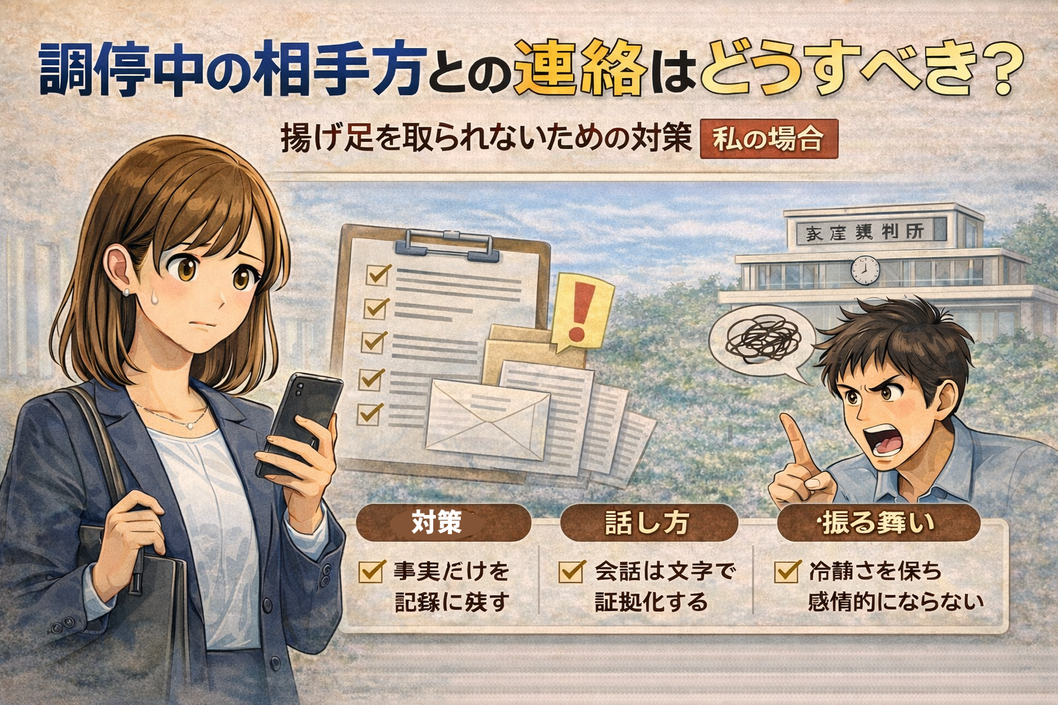 調停中の相手方との連絡はどうすべき?揚げ足を取られないための対策|私の場合