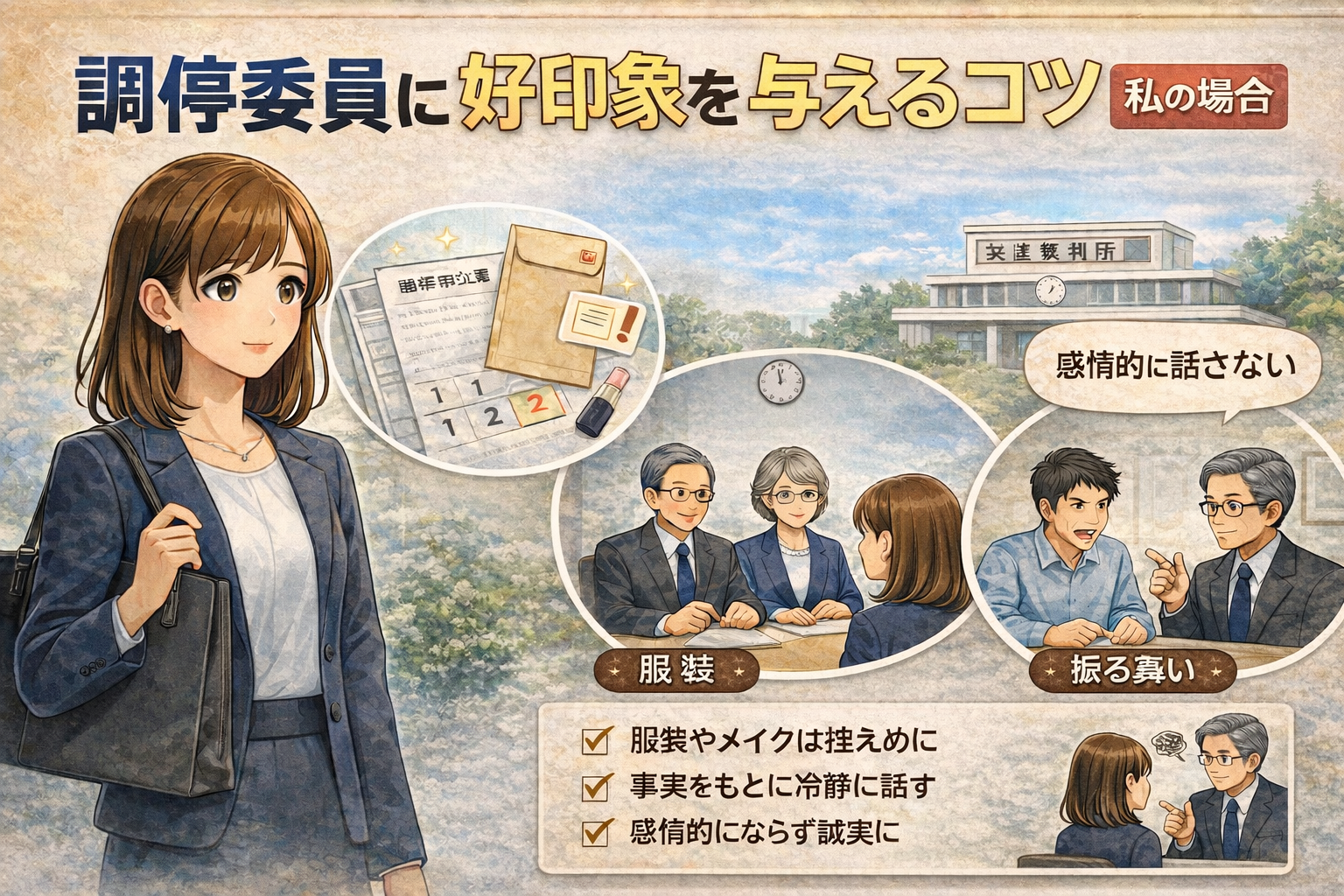 今回は、私が1年以上の調停期間中に徹底して気をつけていた「見た目」と「振る舞い」のコツを、実体験に基づいてご紹介します。