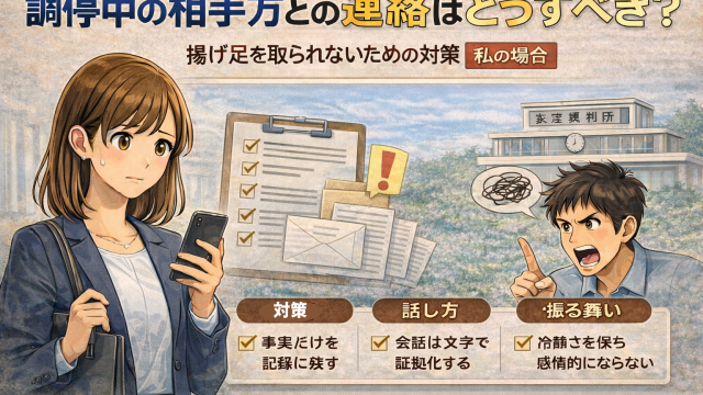 離婚調停中にモラハラ夫などの相手方と直接連絡を取るべきか悩んでいませんか?「禁止されている?」「嫌味を言われたら?」という不安に対し、1年以上の調停を経験した私が、実際に気をつけていた連絡のルールや、揚げ足を取られないための対策を詳しく解説します。